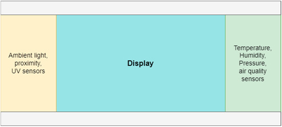 In our research, we noticed that the temperature readings are not closer to reality because our case design was wrong. We put the sensors closer to the Raspberry Pi, and because the CPU generates a lot of heat, the data can include errors of more than 5° Celsius in the case of temperature sensors. Some manufacturers split the cases into two modules, but they are still wrong. For example, we can find nice, small products that have a traditional size of a normal European wall switch or plug adapter, 86 mm by 86 mm. One part contains the relays and the power supply, while the other part contains the screen, the microcontroller, and the temperature sensor. The problem in this design is that the screen and the microcontroller generate enough heat to modify the output of the temperature sensor by 4° Celsius, depending of course by the ambient temperature. We studied this problem a little, and our final Raspberry Pi design includes the temperature, humidity, and pressure sensors in a separate compartment on the left or right side of the screen. The microcontroller is installed in a compartment which will be inside the wall, while the screen box is on top of the microcontroller box, and the left and right sides of the screen are not in contact with a heat source. In Figure 5, you can see the box containing the screen and sensor compartments. The temperature, humidity, pressure, and air quality sensor compartment must have a very good ventilation, so it must have holes on the right side. If we want to provide a good air flow for the microcontroller, we can have holes in the compartments marked in gray.