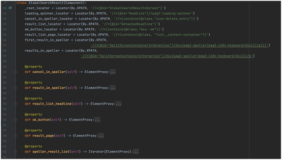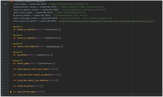 In Figure 17, we exemplified the code of a page class from the ‘Locate’ code abstraction layer and in Figure 18 the same class using POM. Screenshots are taken at different stages of development of our automation framework and should clearly point out how the LEE design pattern reduces confusion about using POM correctly. Tidiness of the code after using LEE is shown in Figure 19. We had a similar approach with our smart-home system testing, and the efficiency of using LEE increases with the level of complexity of the project.