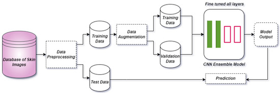 With a small amount of training data, Yuet al. [14] built a highly deep CNN and a variety of learning frameworks. Esteva et al. [15] employed a pre-trained CNN approach to develop and acquire a dermatologist-level diagnosis from more than 120,000 images. Haenssle et al. [16] presented CNN models that have proven superior to or more reliable than dermatologists. Deep learning is used to create further techniques, such as the ensemble model [17], which aggregates the features of numerous models, to identify skin cancer.