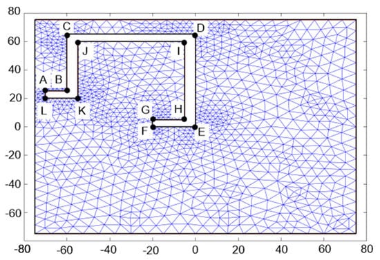 The numerical model of the G-slot patch is depicted in Figure 2. Boundaries (black lines) are associated with the Neumann boundary condition. The dimensions of the patch are fixed. Position and dimensions of the slot are varied by changing the coordinates of polygon vertices A through L.