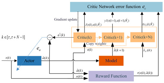 The ideal terminal constraint can be obtained from Formula (13). According to Formulas (24) and (26), the critic network error function is given by