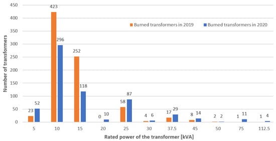 As can be seen in Figure 8 and Table 3, the proposed methodology is compared to the methodology proposed in [33]. The methodology proposed in the current work predicts in general in every transformer’s power, rating a smaller number of transformers that may present problems in comparison to [33]. The total predicted burned transformers for the methodology presented in [33] is 910, while for the AI methodology presented in this work, the number is 852. This difference of 58 transformers is not negligible. Taking into consideration that the proposed methodology presents a higher accuracy rate than that in [33], it has a positive impact on the maintenance of these transformers. The maintenance of the transformers that may be burned is more expensive than periodic maintenance with fewer spare parts that must be replaced and with fewer working hours. Consequently, the proposed methodology saves a considerable amount of money to the DSO that may be used in investments.
