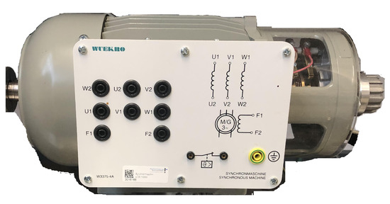 The proposed SVM-based DFC measurement sequence that extracts the DFC flux linkages’ signals with the same offset level is validated through computer simulation in this paper. As DFC exploits the fact that the stator’s self-inductances vary as a function of the rotor position, it is necessary to have a machine model that reproduces with high fidelity the electromagnetic phenomena that occur in the real machine. The latter is actually possible using a finite element model of the synchronous machine. In particular, we have modeled a real Wound Rotor Separated Excited Synchronous machine (WRSESM) using the finite element (FE) method in ANSYS Maxwell. Certainly, in the future, we will use the developed WRSESM model to study the behavior of DFC varying the rotor flux changing the field current. However, in this work, for all the field oriented control simulations that we have performed, we have kept the WRSESM’s field current constant at 0.4 A. Therefore, in reality, the WRSESM behaved effectively as a PMSM for all the field oriented control studies presented in this paper. Furthermore, the company WUEKRO GmbH supplied us with a real WRSESM (see Figure 7) whose nominal parameters can be seen in Table 2.
