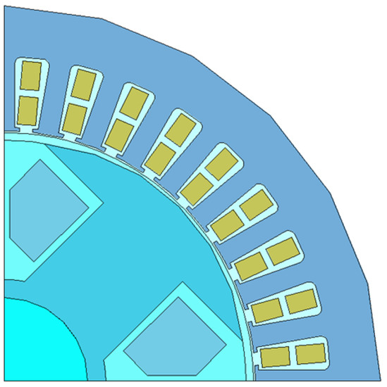 Quarter finite element model of the WRSESM developed in ANSYS Maxwell.