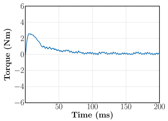 Obviously, we can see in Figure 18 that the measured current deviates a little from its zero reference at the beginning of the simulation. The latter is due to the fact that, at the beginning of the simulation, the deviation between the rotor estimated position and the real rotor position is large. After t = 50 ms, the DFC outputted rotor position better approaches the real rotor position, and thus the d-axis currents remain closer to its zero reference as expected due to the action of the d-axis current controller. Finally, it is possible to see in Figure 19 that is proportional to the torque produced by the synchronous motor, which is depicted in Figure 20. Notice that, at t = 50 ms, there is a small deviation on the q-axis current and in the motor’s torque due to the effect of the load torque at the shaft of the synchronous machine. Altogether, it can be seen that the proposed sequence is effective to perform sensorless speed control with field oriented control at high speeds—for this last simulation, at a speed of 80% of the nominal speed of the synchronous machine.