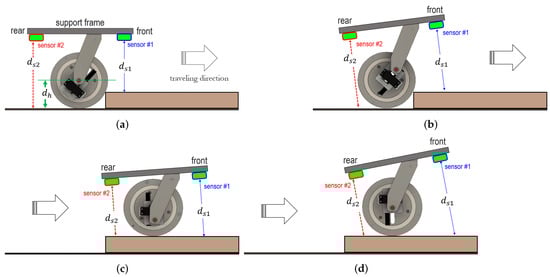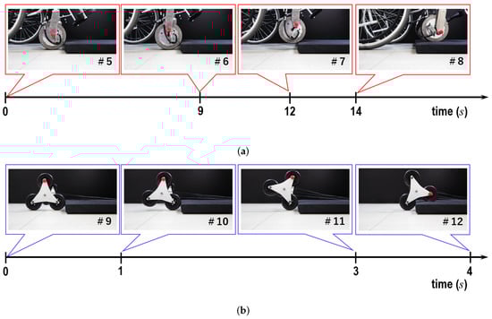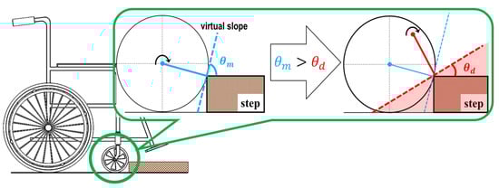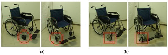 - Munakata, Y.; Wada, M. A Novel Step Climbing Strategy for a Wheelchair with Active-Caster add-on Mechanism. In Proceedings of the 2015 IEEE/RSJ International Conference on Intelligent Robots and Systems, Hamburg, Germany, 28 September–2 October 2015; pp. 6324–6329. [Google Scholar] [CrossRef]