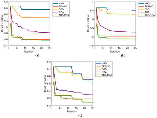Comparison of the proposed ABC-ROA-based privacy preservation system convergence rate to existing meta-heuristic algorithms with various datasets is shown in Figure 8. Compared to HHO, EF-HHO, BCO, and ROA, the performance of the ABC-ROA-based privacy preservation system, the cost function is highly improved by 2.98%, 3.07%, 3.56%, and 4.12%, respectively, in dataset 3 at iteration value of 15. If the iteration increases, then the cost function of the designed ABC-ROA method gets decreased. Hence, the graph analysis shows better performance in the recommended method. The existing EF-HHO algorithm achieves second-best performance. As a result, the developed ABC-ROA-based privacy preservation model using blockchain technology performs more effectively than other algorithms.