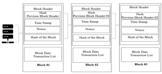 A blockchain is a type of distributed database that keeps a ledger that is encrypted. The name comes from how it is put together. In the blockchain, each block comprises of multiple transactions, and whenever a new transaction takes place, a record of that transaction is added to the ledger of all participants. Most people use Bitcoin and Ethereum as their blockchain platforms. When using blockchain, all of the transactions are put into a single block and saved for good. A blockchain is made by linking these blocks in order and in a straight line. A hash of the block header is used to find each block in the blockchain. New blocks can be added to the blockchain by tracing the history of valid network transactions back to the first block [31]. The structure of a blockchain is presented in Figure 1.