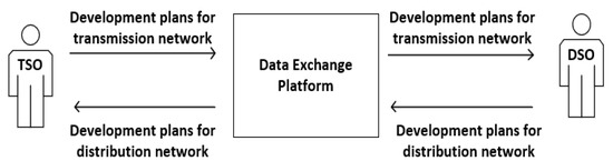 Figure 6 illustrates the platform’s operation in the scenario of development plans. The process involves four steps in which the DSO and TSO use the platform to share information, such as plans for building transmission networks and plans for building distribution networks. Table 1 provides a step-by-step analysis of the use case.
