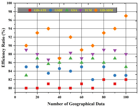 Integration of local and scientific spatial information, land and resource mapping, area planning, community-based natural resource management, natural hazards, and environmental management are some of the primary applications of gis in rural growth. gis can measure the quality of rural area soil and identify whether it can be used for mining purposes or not. gis helps the government recognize the problems of rural areas, such as improper sanitation conditions, no electricity, etc., so the government can use gis to track animal and human migration patterns. Using gis’s efficient mapping capabilities and scientific planning and management methodologies, recent research on rural planning illustrated that gis’s robust spatial analysis could be effectively applied to rural areas. Proper and efficient use of gis enhanced the new rural planning’s scientific, practical, normative, and accurate performance. Figure 8 displays the efficiency ratio of the recommended gis-sdm model. It can be seen that the efficiency ratio of the model in this paper is much higher than the test results of other models. The efficiency ratio can reach up to 97%, which has obvious advantages.