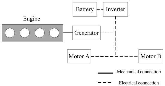 This study is mainly aimed at series hybrid electric vehicles, as shown in Figure 1. Additionally, the improvement of vehicle performance by good control strategies is mainly reflected in the following aspects: