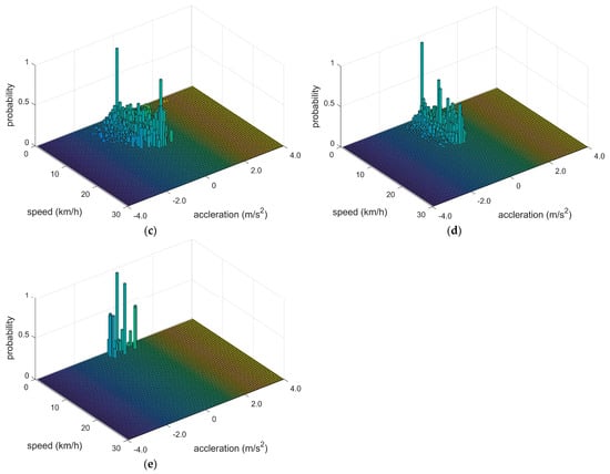 For each classification, the principle of Markov chain model is utilized to predict the future speed of the HEV. To predict the future speed of the vehicle, it is necessary to calculate the transition probability between states, that is, the state transition probability matrix. The specific calculation process is as shown in (2) [27]. Results obtained are shown in Figure 7.