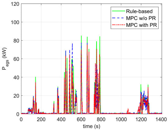 penalize the difference between the power provided of the EGS and the demanded power, and are the weighting coefficients, and is the terminal punishment of the SOC where is set to 0.65.