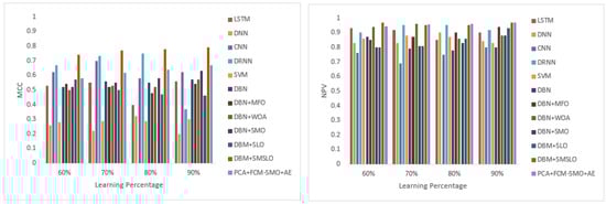 The MCC and NPV values on a comparison basis are shown in Figure 7, and the F-Measure value on a comparison basis has been shown in Figure 8.