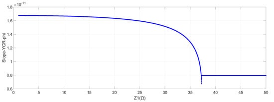 The relationship between the phase of admittance YCR’s frequency-dependent slope and Z1.