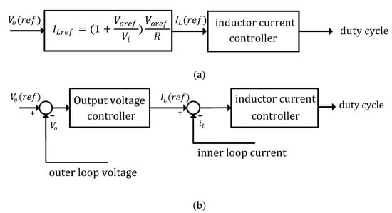 where and are inductor current and output voltage, respectively, in steady state operation. Equation (4) indicates that there is a direct relationship between system state variables. Hence, the output voltage can be controlled indirectly by adjusting the inductor current using the block diagram illustrated in Figure 2a. However: