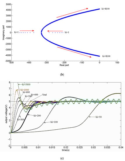 Characteristic equation roots and output voltage of the closed-loop controller for different controller gains. (a) Characteristic equation roots during charges of (); (b) characteristic equation roots during charges of (); and (c) step response of proposed PSMC for different values of at the start−up moment.