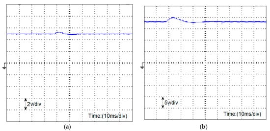 Comparison of the proposed and double-loop controllers during voltage reference changes. (a) Output voltage of the proposed adaptive PSMC (vertical scale is 2 V per square and time scale is 20 ms per square). (b) Output voltage of the double-loop standard SMC (vertical scale is 2 V per square and time scale is 20 ms per square).