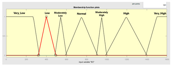 As for the degree of TDS membership function, it can be seen in Figure 17, where TDS can be categorized as follows: