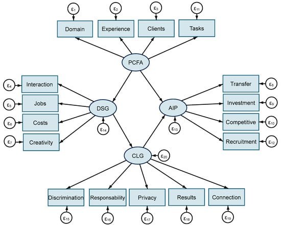 The research methodology is based on the application of structural equation modelling (SEM). SEM is a multivariate statistical method frequently used to conduct fundamental or applied research in behavioral, managerial, or quantitative social sciences [52]. It provides a complex underlying statistical theory and can address a variety of research hypotheses. As a modern econometric procedure, SEM demonstrates the capacity to estimate complex model correlations while measuring the error inherent in the indicators [53] and it has developed to support specific, accurate network models to match observations to theory [54]. Jeon [55] identified, among the advantages of SEM, the following: the possibility to capture latent variables and measurement equations; the capacity to determine the correlations between the dependent variables and pursue simultaneous estimation; the possibility to identify the direct effect, indirect effect, and total effect; to apply multiple statistical methods in one model (SEM contains measurement equations and structural equations); and to specify the reciprocal causal relationship between the latent variables. This method was also applied to previous studies regarding AI usage and employee perspective [56], and the impact of AI solutions and ethical concerns [57]. The popularity of this method can also be explained by the existence of various available and easily accessible software programs that allow researchers to apply SEM efficiently [55].