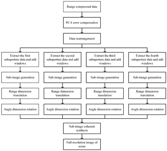 - Finally, the transformed subimages are phase compensated and coherently synthesized to obtain the full resolution imaging result of the scene.