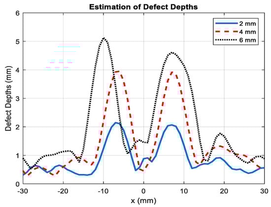 Thickness estimation of defects with of 2 mm, 4 mm, and 6 mm with = 2 mm with a smaller sensor.