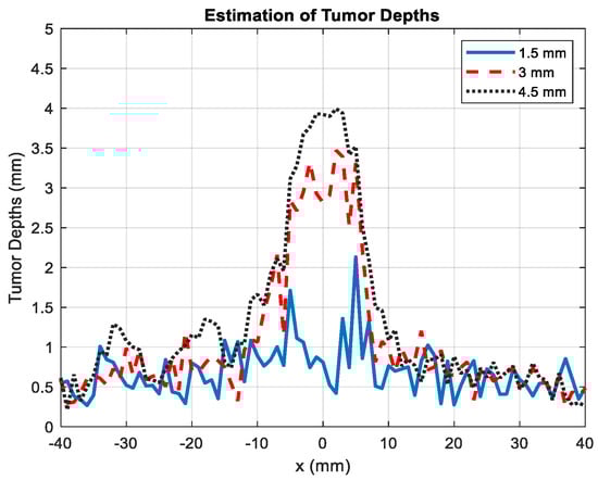 Depth estimation of the tumor for actual thicknesses of 1.5 mm, 3 mm, and 4.5 mm.