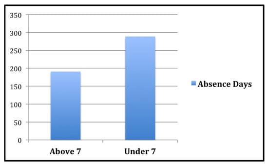 The data set also includes a feature for recording students’ attendance at school to measure the influence of such a feature. As seen in Figure 3, students are divided into two groups according to the number of absence days: 289 students have fewer absence days than 7, while 191 students have more than 7.