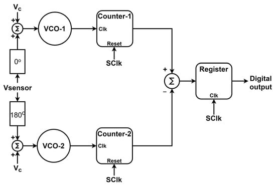 Basic architecture of a differential open-loop VCO-based sensor to digital converter.