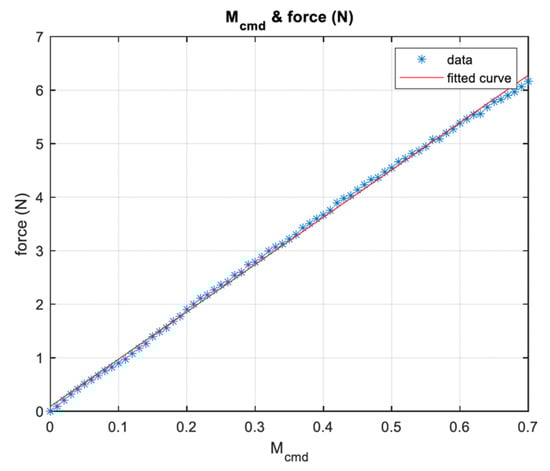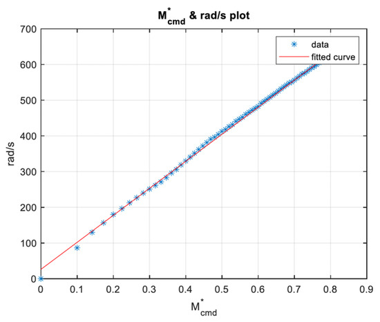 In this study, the relationship between motor angular speed and motor command is described in Equation (7).