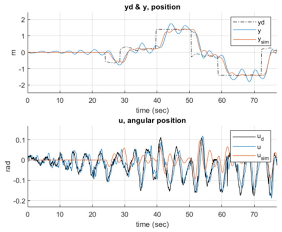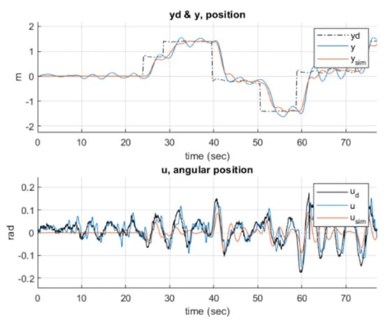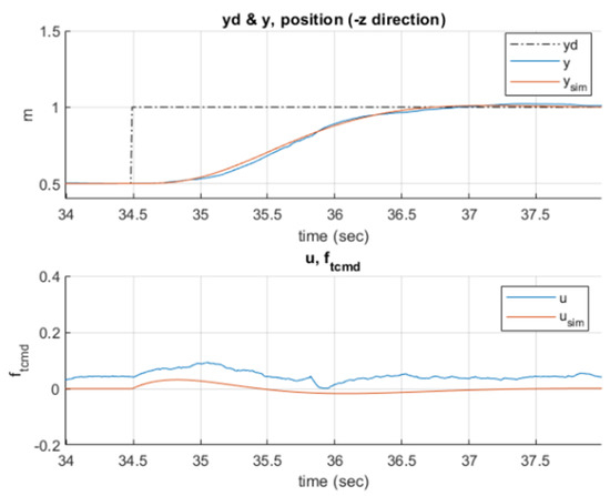 For the altitude control, the control performance of the compensator design and of the LQG design is shown in Figure 42 and Figure 43, respectively. The simulation agrees with the experimental response. Overshooting is observed in both design approaches, while the LQG control response is smoother and faster.