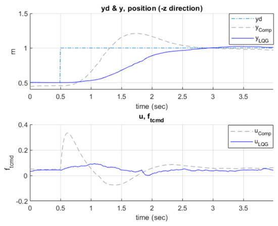 For the altitude control, a comparison between the LQG and the lead-lag compensator is shown in Figure 46. The performance of the LQG is better than that of the lead-lag compensator since the control amount of the LQG controller is smoother so that it is kept away from control saturation with a similar settling time.