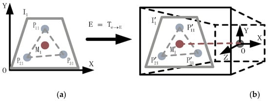 Coordinate transformation. (a) US image coordinate system; (b) 3D reconstruction coordinate system.