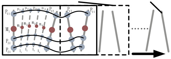 The starting points of each curve on in the control window are traversed. Because three points in space can determine a 2D plane, the three starting points in cannot be on a straight line. Through the coordinate transformation matrix , the point on is mapped to the plane in the coordinate system of the reconstructed volume. The origin O of the coordinate system of the reconstructed body is the placement position of the acousto-optic positioning device. In Figure 2, the coordinate points of in the coordinate system of the 3D reconstruction volume are , of which the central coordinate point is . We calculate the vector passing through and the coordinate origin O, and obtain the angle between the vector and the three coordinate axes in the 3D reconstruction coordinate system . The degree of freedom parameters of the relative motion of the target point can be obtained. The plane can be represented by the coordinates of the center point. The points on the first curve on the four ultrasound images in the control window are represented by, respectively, , as shown in Figure 3. The corresponding coordinate positions of these four points in the ultrasound image coordinate system are the same; however, after mapping to the reconstruction volume coordinate system, the spatial coordinates of the four points are different. According to Equation (1), , , n represents different curves.