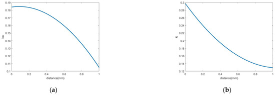 For two consecutive images of B-scan sequences, is the Z-axis scattering ratio, is the lateral scattering ratio, and kl includes X-axis and Y-axis. The scattering ratio values , , corresponding to can be calculated using Equation (6). and compose in proportion, and use Equation (5) to calculate the curve. Finally, the distance is obtained from the lookup table.