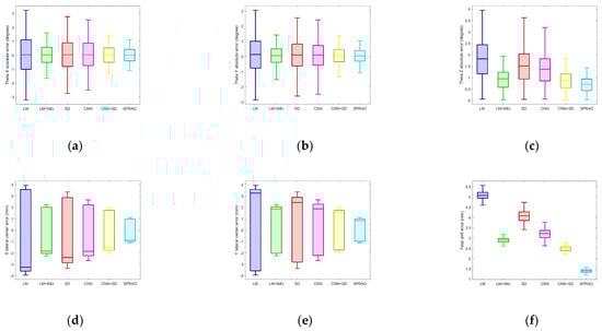 Error of different methods for dataset DB5. (a) Theta X; (b) Theta Y; (c) Theta Z; (d) Lateral X; (e) Lateral Y; (f) Drift.