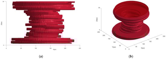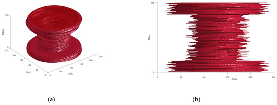 Results of 3D ultrasound reconstruction without Bezier interpolation in DB3. (a) 3D; (b) X-Z.