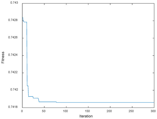 where N is the number of particles; ; ; k is the number of iterations; is the inertia weight; and are the coefficients of acceleration, and and are random numbers between 0 and 1.