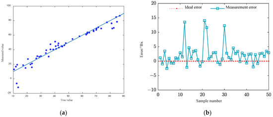 Measurement results of syrup brix based on multiple regression fitting in the independent test set. (a) Measurement results of brix; (b) Measurement errors of brix.