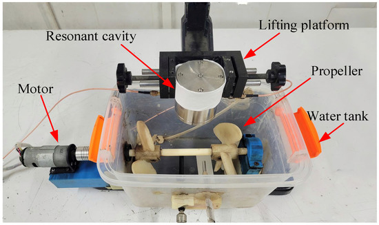 During sugar production, as the syrup flows into the sugar jar, the syrup is transformed from a Newtonian into a non-Newtonian fluid when the brix reaches the critical value. This changes the viscosity of the brix, which could cause a change in the resonance parameter with the change in the brix. Therefore, to verify the accuracy of the syrup brix calculation model based on the PSO–SVR model when it is used in practical applications, this study built an online platform for measuring syrup brix with fluidity, as shown in Figure 13. The platform consists of a water tank, propeller, motor, lifting platform, and resonant cavity measurement system. The resonant cavity measurement system consists of a resonant cavity, STM32F103 micro controller, microwave signal source, isolator, demodulator, and display unit. The working principle of it is shown in Figure 14. Substances other than syrups (e.g., water tanks and propellers) close to the opening of the resonant cavity can disrupt the electromagnetic field distribution, which affects the measurement accuracy. Therefore, the opening of the resonant cavity must be located at a certain distance from other non-measuring substances. Because the penetration depth of the microwave signal at 2.45 GHz in pure water is approximately 40 mm, while that in a sugar–water mixture is less than that in water [37], the opening of the resonator should be at least 40 mm away from other non-measuring substances. In the flowing state, the distribution of syrup is uniform and consistent with the actual production, so even if the temperature of syrup in the laboratory is different from the actual production (50–70 °C), the influence of temperature on the measurement can be ignored.