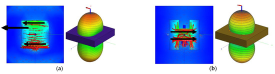 Scattering characteristic currents distribution and far−field patterns comparison for at 5.0 GHz. (a) Mode 2 of the reference antenna; (b) mode 2 of antenna A.
