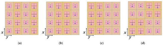 Four forms of proposed arrays. (a) ABAB; (b) ABBA; (c) AABB; (d) checkerboard.