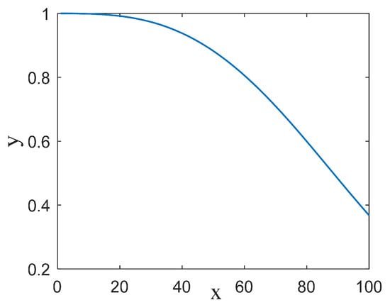 As shown in Figure 4, in the initial stage of the iteration, the weight is larger and the slope is smaller, guaranteeing an appropriate search range; in the end stage, the weight is smaller and the slope is larger, which improves the optimization ability of the algorithm and accelerates the convergence speed. It also balances the exploration and exploitation ability of the algorithm. After adopting the adaptive weight, the mathematical model for the position update of the whale optimization algorithm is shown in Equation (15).