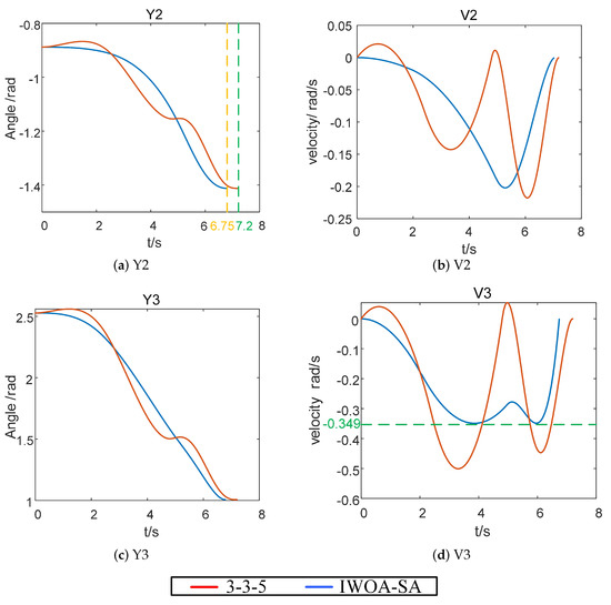 In Figure 6, the motion curves of each joint of the robot before and after optimization by the IWOA-SA algorithm are compared.