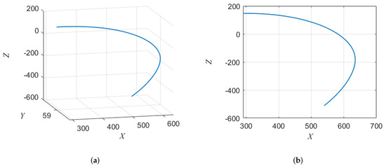 In Table 7 and Figure 6, we can see that: (1) The IWOA-SA algorithm ensures that the angular velocity of each joint is within the velocity limit ( rad/s). (2) The running time of each joint is reduced by about 6.25% compared with the 3-3-5 algorithm. As shown in Figure 6d, before using the optimization algorithm, the angular velocity of each joint of the robot easily exceeds the speed limit, and after using the optimization algorithm, the angular velocity of each joint is limited to the velocity range. Figure 7 shows the foot-end trajectory curve after using the IWOA-SA optimization algorithm.