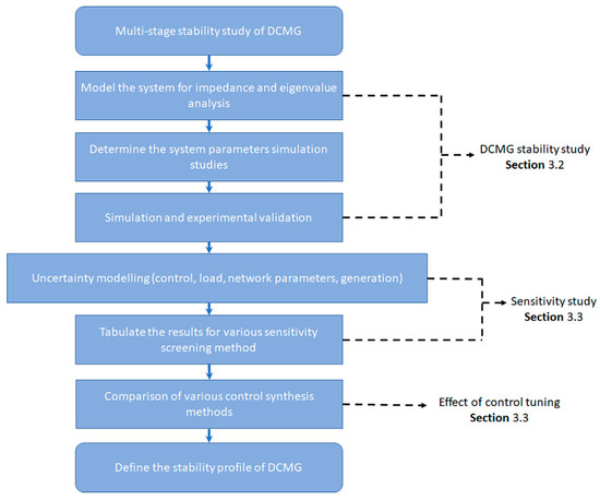 Therefore, finding the source of the power oscillation and how to maintain the stability of a DC distribution network under such oscillatory conditions require further exploration. Therefore, these are the critical interests of this work. The flowchart of the complete work is given in Figure 1.
