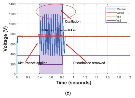 Another possibility for power oscillations in the sub-synchronous range could be in the form of resonance. A dynamic system can lose its equilibrium state temporarily due to disturbances. A sub-synchronous frequency of oscillation could occur when two dynamic systems are bilaterally coupled. One can affect others and may lead to instability. The sub-synchronous frequency of oscillation poses a significant threat to system stability, as reported in [26,27,28]. It can be significantly amplified with time, causing system instability. Furthermore, if the disturbing force frequency is near or equal to one of the natural frequencies of the system, resonance may potentially occur in the system. Sub-synchronous resonances could lead to voltage fluctuation and light flickering, and an abnormal vibration of the control. In the previously mentioned literature, the effect of sub-synchronous oscillations and the mitigation of power oscillations in the DC bus is yet to be extensively investigated.