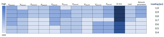 From the participation factor analysis, it is found that the 152 Hz and 230 Hz modes are contributed by the two boost converters. The HF modes (e.g., 2878 Hz, 9224 Hz, and 2258 Hz) are contributed by the three buck converters. Consequently, to see the system sensitivity against small changes in the parameters, a detailed sensitivity analysis has been conducted in the following subsections.