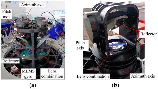 In general, the gyros of a laser communication transceiver are mounted on the drive shafts of the reflectors to stabilize the LOS. In order to optimize the transceiver structure, a gyro is mounted on the base of a reflector while stabilizing all the LOS [11]. However, this modification requires a complicated mathematical model [12].