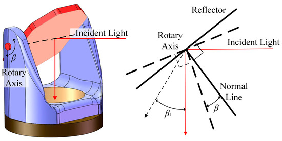 According to Snell’s law of reflection, when a reflector rotates for an angle β, its LOS rotates for an angle β1. Accordingly, the geometrical relationship between the two angles is: